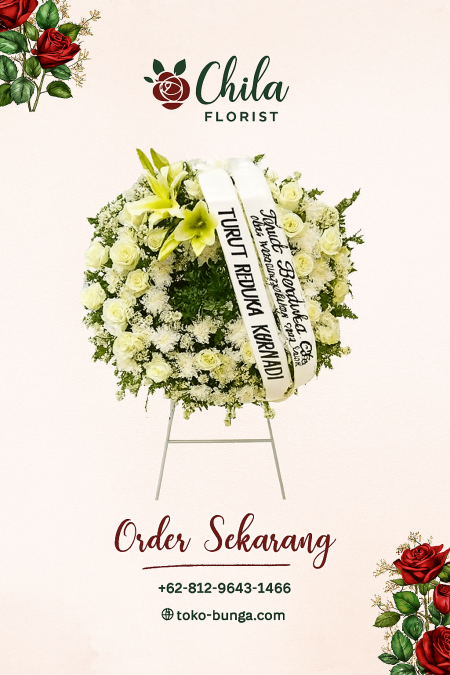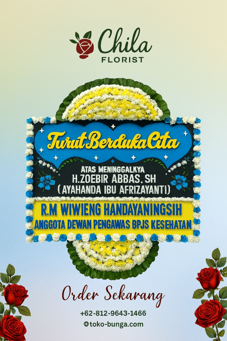 Bentuk simpati dan dukungan Anda lewat papan duka cita yang sopan dan berkelas. Warna tenang dengan bunga pilihan terbaik.